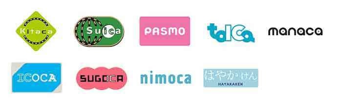 (Kitaca、Suica、PASMO、toica、manaca、ICOCA、SUGOCA、nimoca、はやかけん)